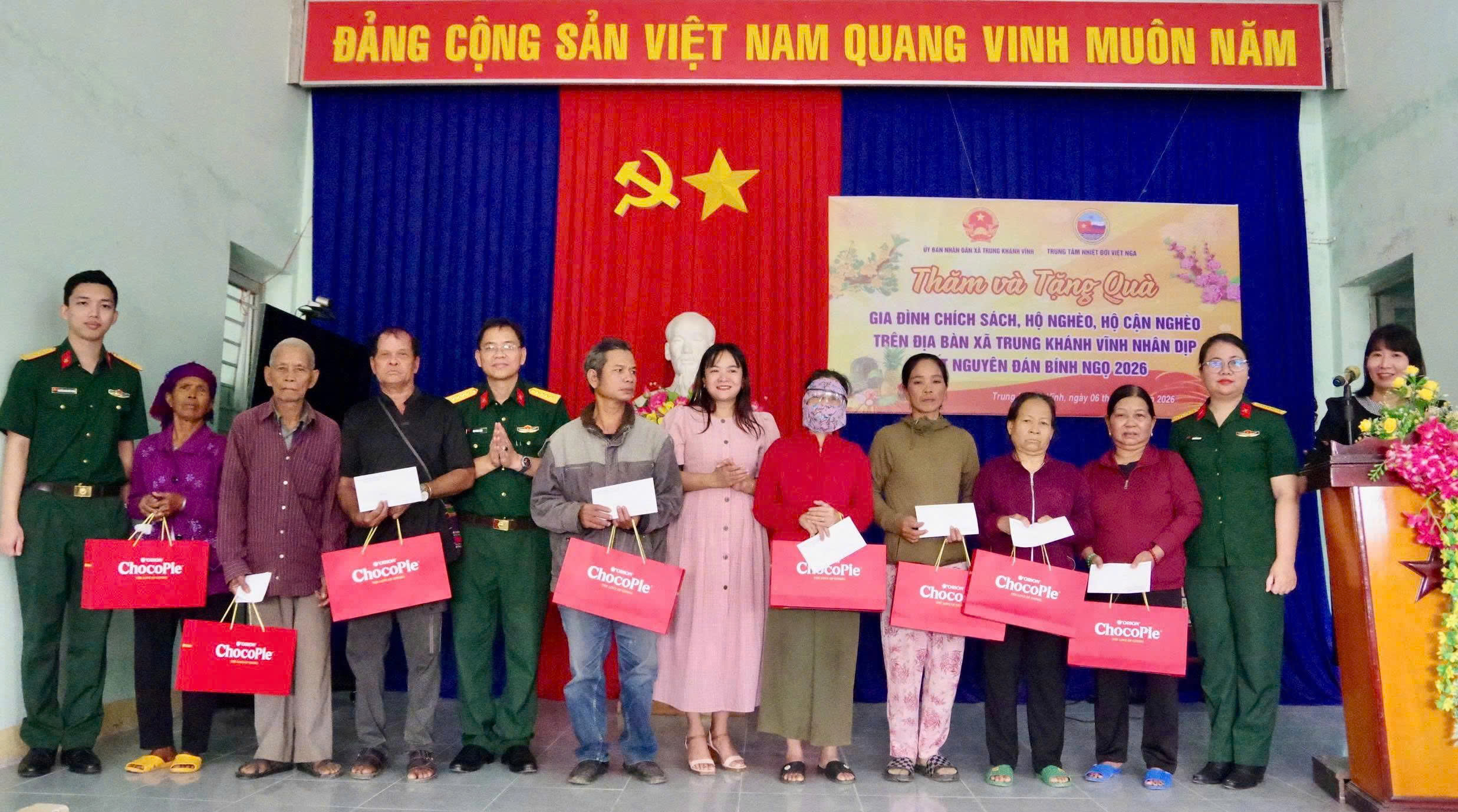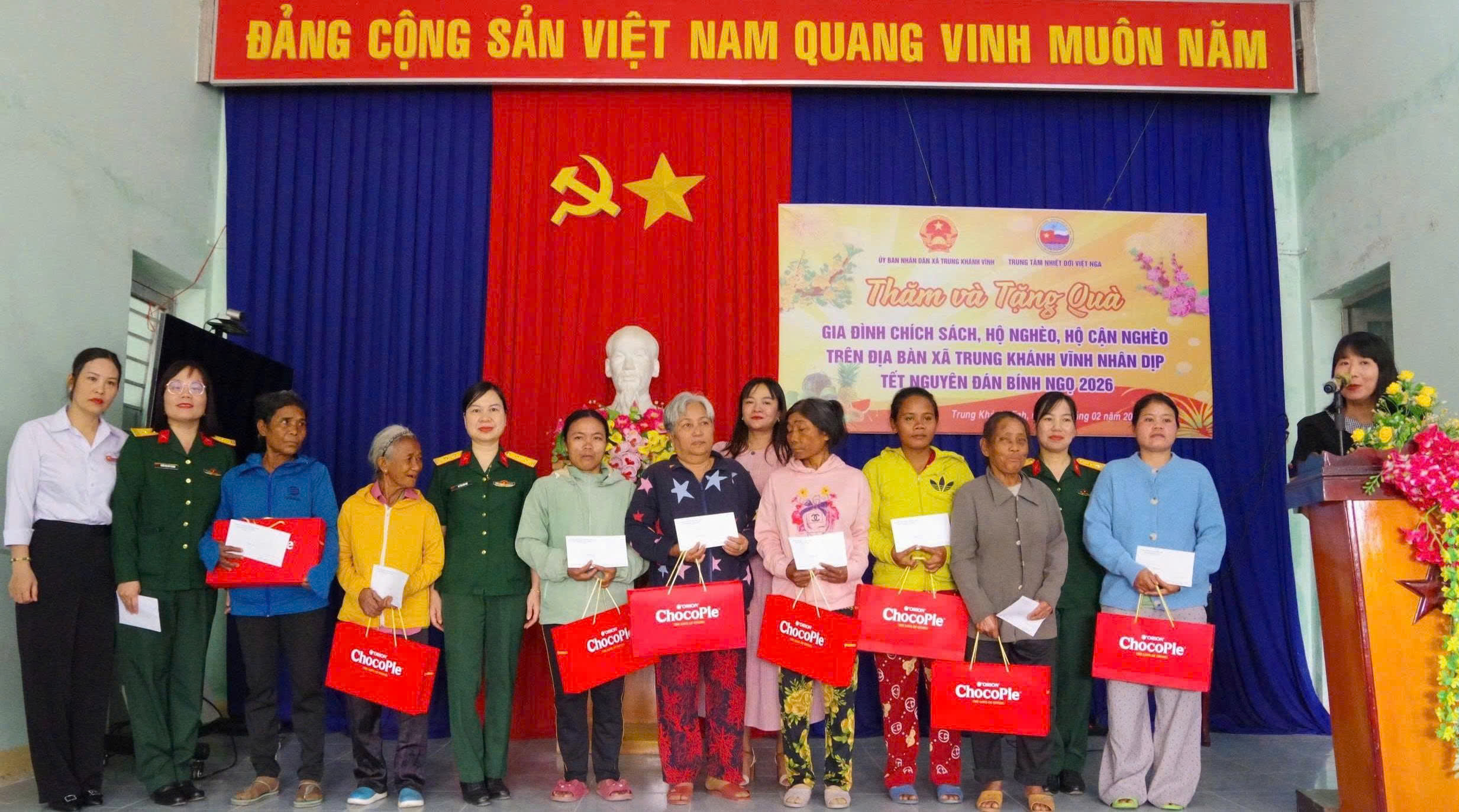 06/02/2026Nhân dịp Tết Nguyên đán Bính Ngọ năm 2026, với mong muốn sẻ chia khó khăn, mang đến một mùa xuân ấm áp, nghĩa tình cho đồng bào vùng cao, sáng ngày 06/02, Chi nhánh Ven biển/Trung tâm Nhiệt đới Việt - Nga đã phối hợp với UBND xã Trung Khánh Vĩnh tổ chức chương trình “Tết yêu thương - Nghĩa tình Xuân Bính Ngọ 2026” nhằm thăm hỏi và trao quà Tết cho các hộ gia đình có hoàn cảnh khó khăn trên địa bàn xã.