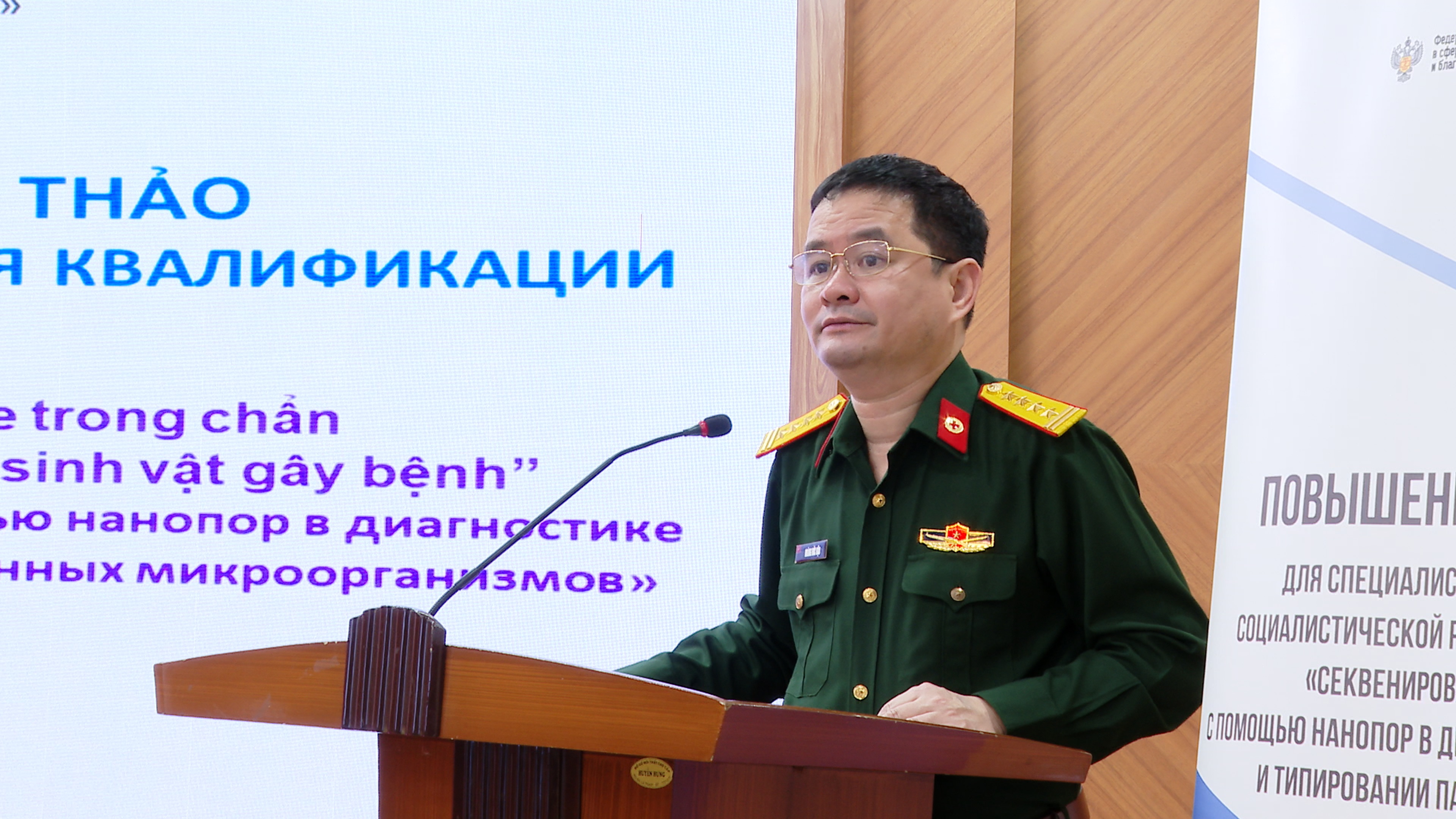 Phát biểu tại hội thảo, Đại tá Hoàng Đức Hậu nhấn mạnh, việc làm chủ và ứng dụng hiệu quả công nghệ giải trình tự Nanopore sẽ góp phần quan trọng trong nâng cao năng lực chẩn đoán, giám sát và phòng, chống các bệnh truyền nhiễm, đặc biệt trong bối cảnh dịch bệnh có nhiều diễn biến phức tạp. Đồng thời, đây cũng là cơ sở để thúc đẩy hợp tác nghiên cứu khoa học giữa các đơn vị trong và ngoài nước.