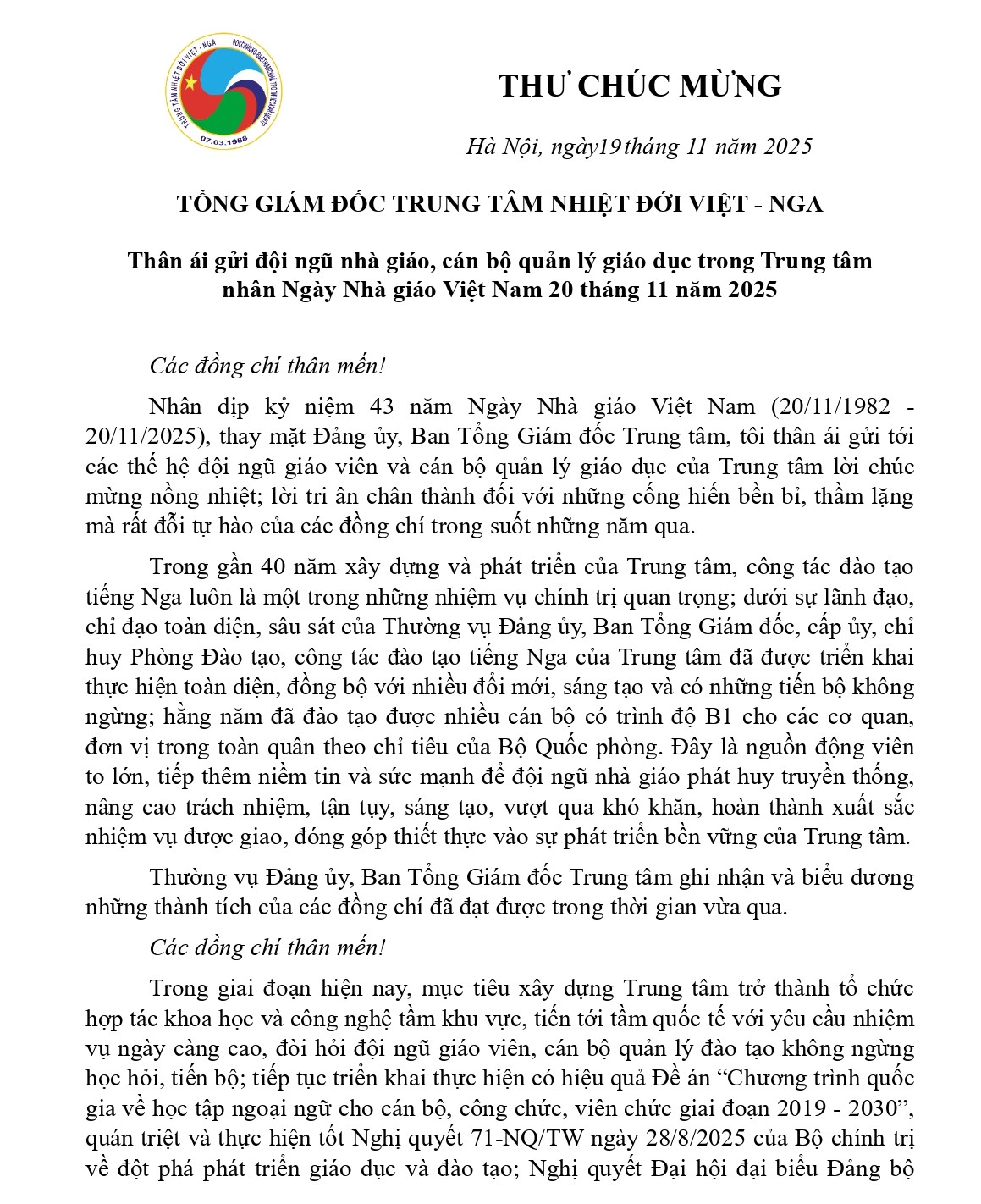 TRUNG TÂM NHIỆT ĐỚI VIỆT - NGA