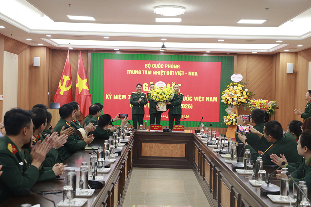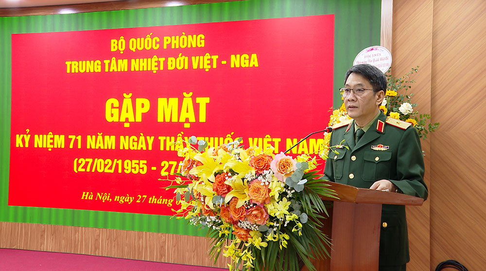 27/02/2026Hòa chung không khí thi đua sôi nổi của toàn quân và cả nước hướng tới kỷ niệm 71 năm Ngày Thầy thuốc Việt Nam (27/2/1955 - 27/2/2026), sáng 27-2, tại Hà Nội, Trung tâm Nhiệt đới Việt - Nga (Trung tâm) tổ chức gặp mặt, chúc mừng đội ngũ cán bộ, bác sĩ, y sĩ, điều dưỡng, kỹ thuật viên đang công tác trong ngành Y của Trung tâm bằng hình thức trực tiếp tại Cơ sở chính và trực tuyến với hai chi nhánh. Đồng chí Thiếu tướng Đặng Hồng Triển, Tổng Giám đốc Trung tâm dự và phát biểu chúc mừng.