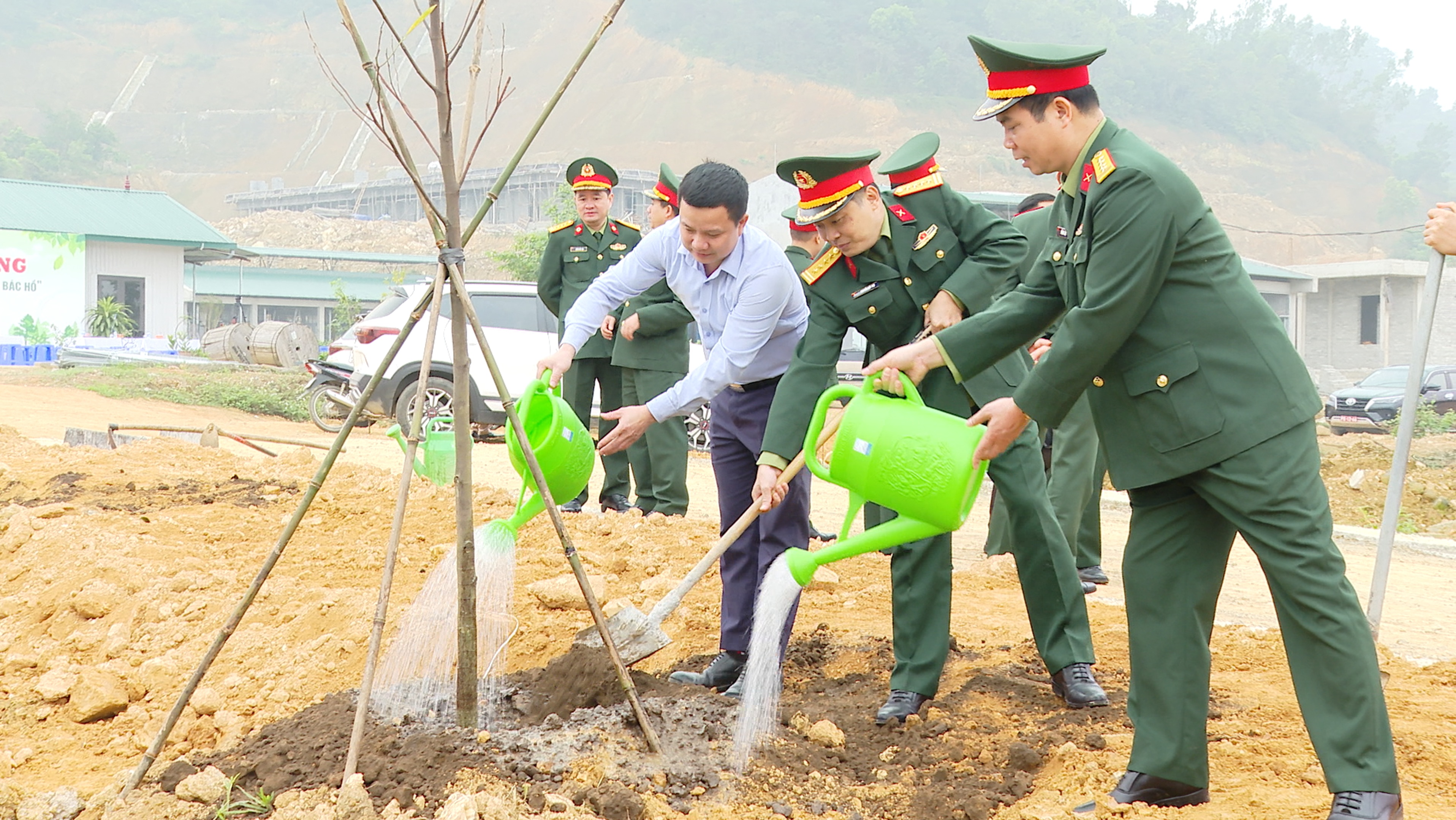 Thủ trưởng Trung tâm và các đại biểu tham gia trồng cây.