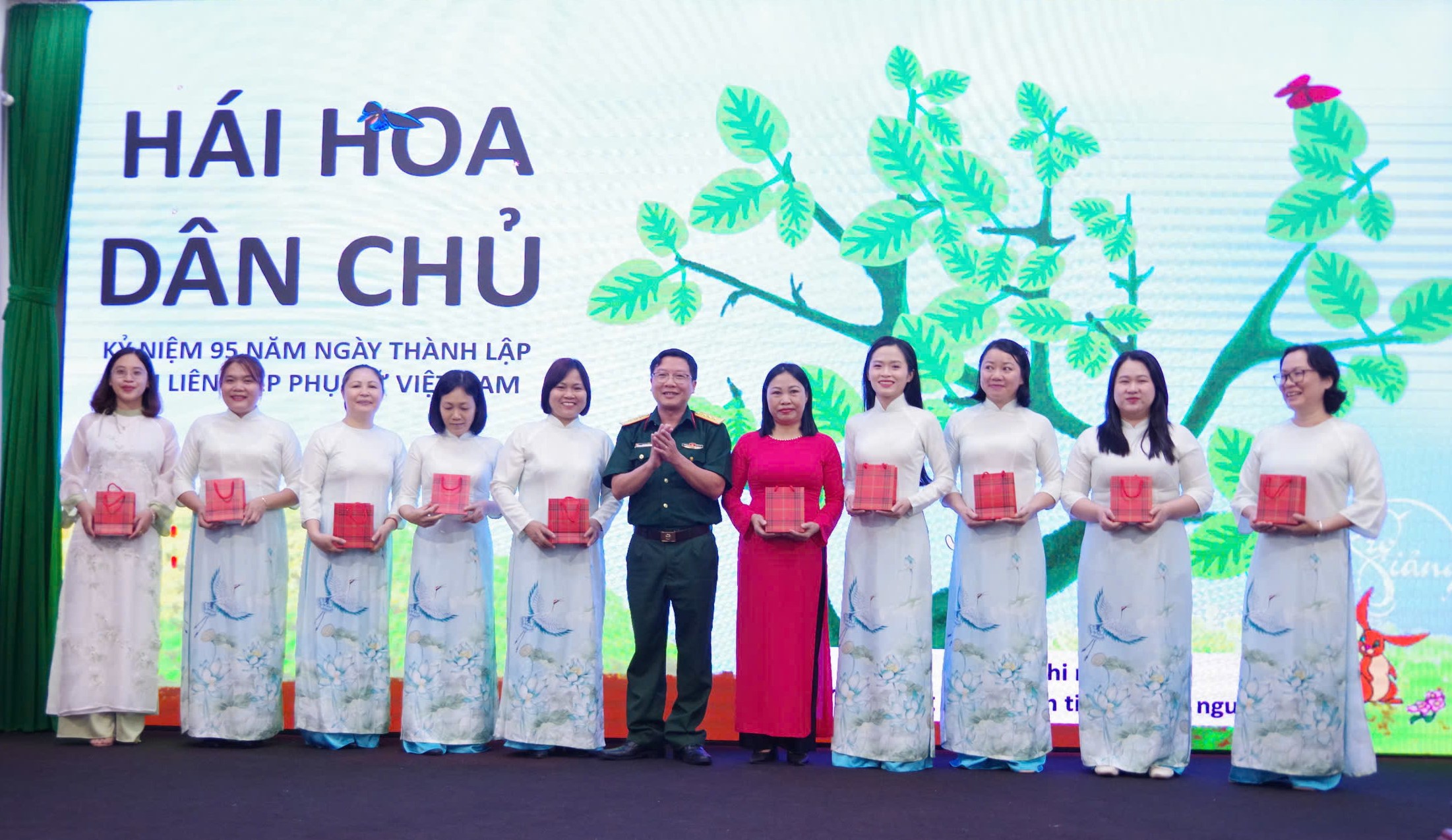 Thủ trưởng tặng hoa chúc mừng Hội Phụ nữ.