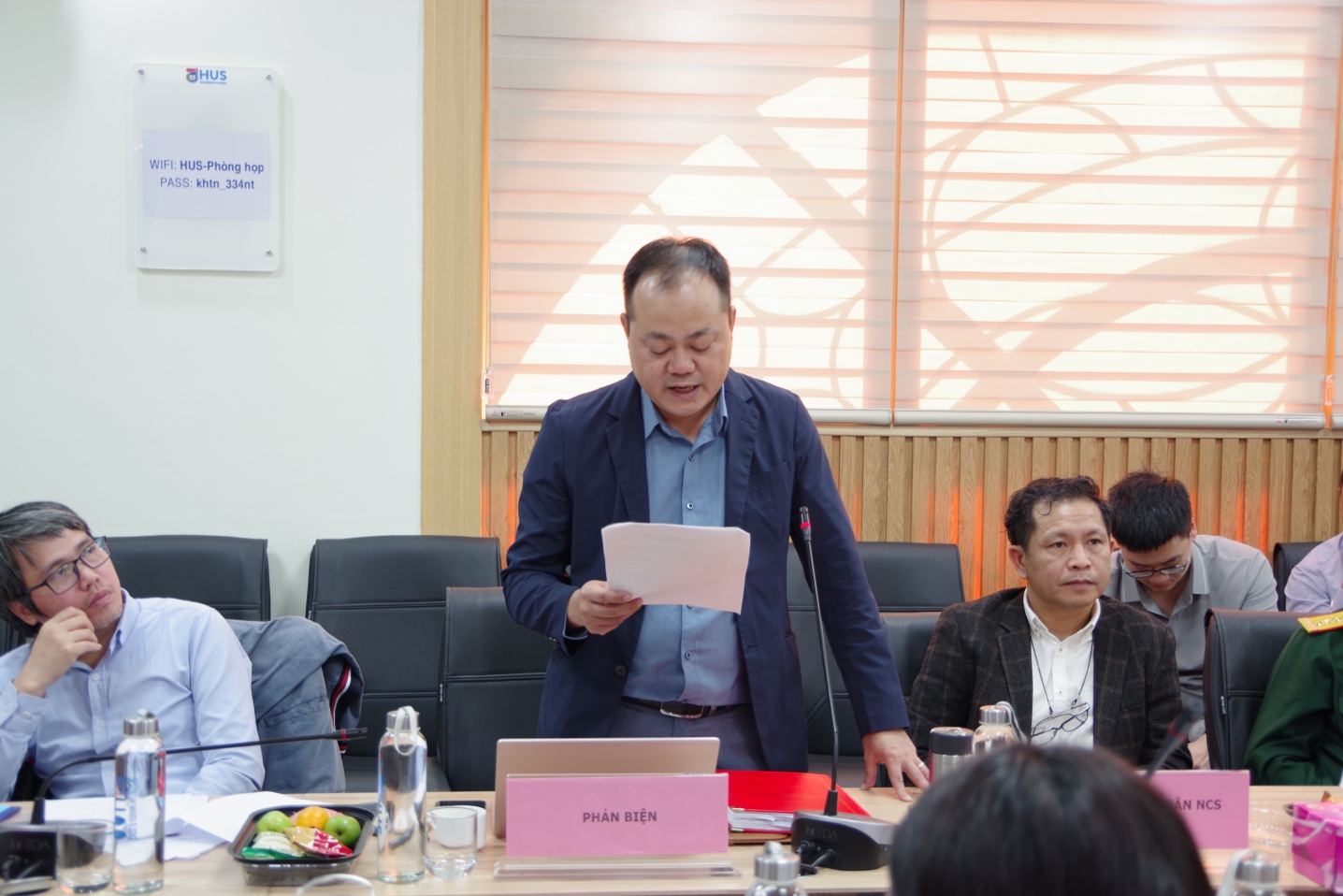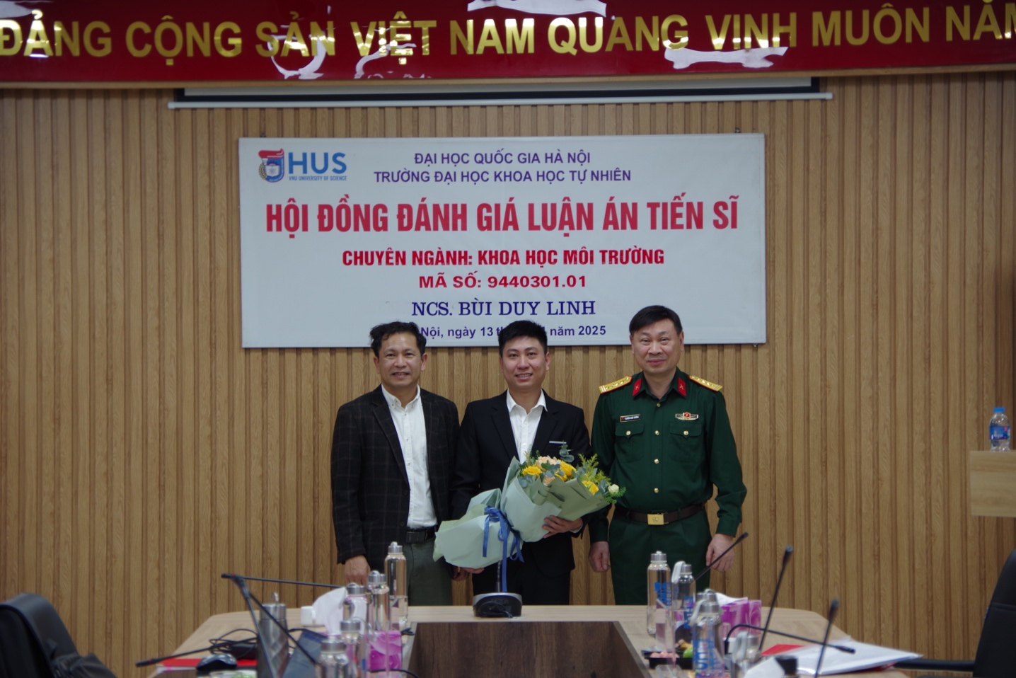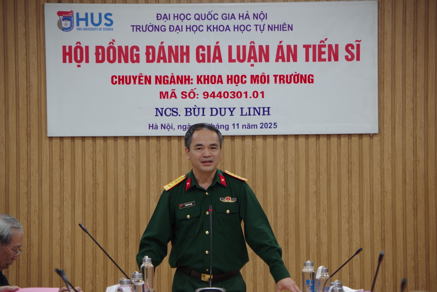 14/11/2025Sáng ngày 13/11, tại Trường Đại học Khoa học Tự nhiên/Đại học Quốc gia Hà Nội, diễn ra buổi họp Hội đồng đánh giá luận án tiến sĩ cấp Đại học Quốc gia cho nghiên cứu sinh (NCS) Bùi Duy Linh, nghiên cứu viên thuộc Phân viện Hoá - Môi trường/Trung tâm Nhiệt đới Việt - Nga với đề tài “Nghiên cứu diễn biến và đặc điểm của bụi mịn trong môi trường không khí tại khu vực Biên Hòa - Tỉnh Đồng Nai”. Đề tài thuộc chuyên ngành Khoa học Môi trường, mã số 9440301.01, được thực hiện dưới sự hướng dẫn của PGS. TS. Hoàng Anh Lê và TS. Nghiêm Xuân Trường.