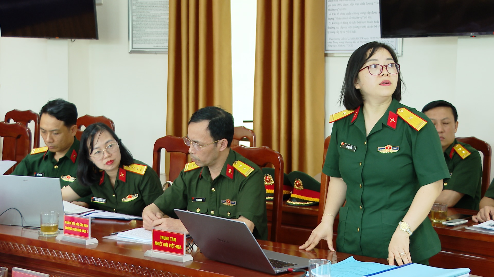 Thiếu tá Đỗ Thị Tuyến báo cáo tại Hội thảo.