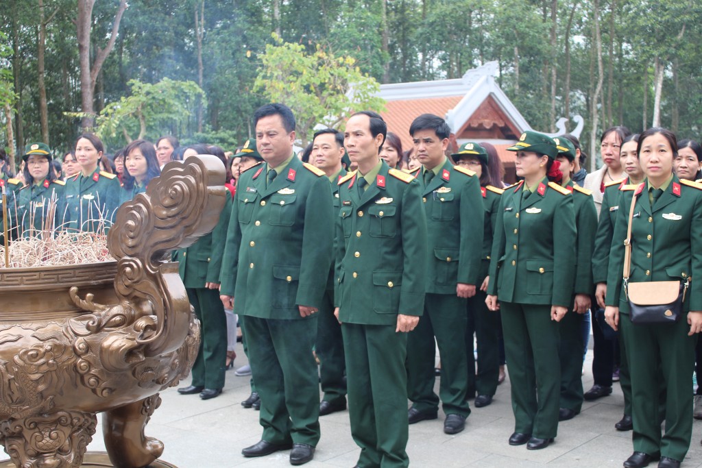 Đồng chí Đại tá Lê Trung Nghĩa, Phó Tổng giám đốc Trung tâm dẫn đầu đoàn tham quan Hội phụ nữ Cơ sở chính thăm Khu di tích lịch sử K9