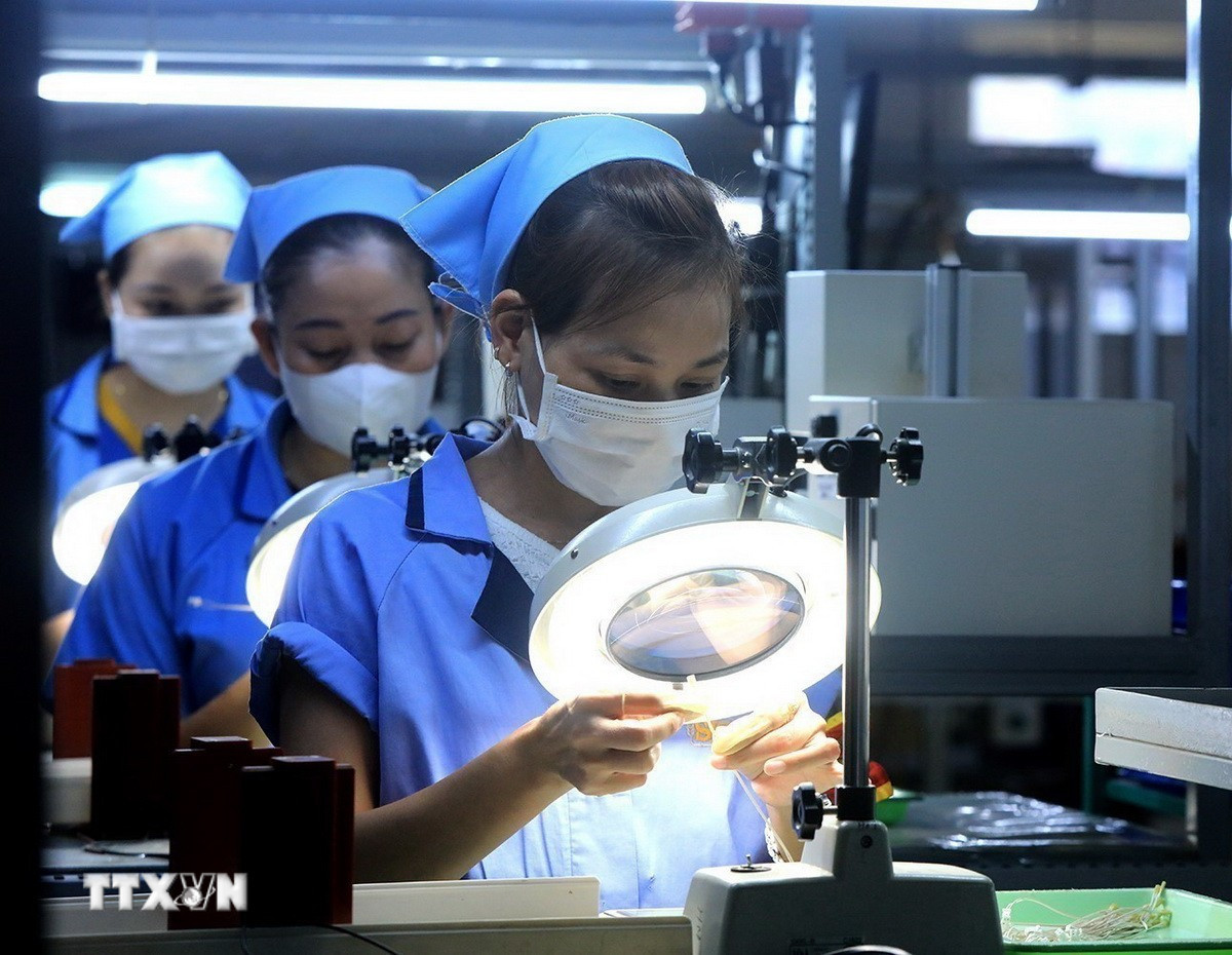Công nhân tại một doanh nghiệp sản xuất linh kiện. (Ảnh: Tuấn Anh/TTXVN).