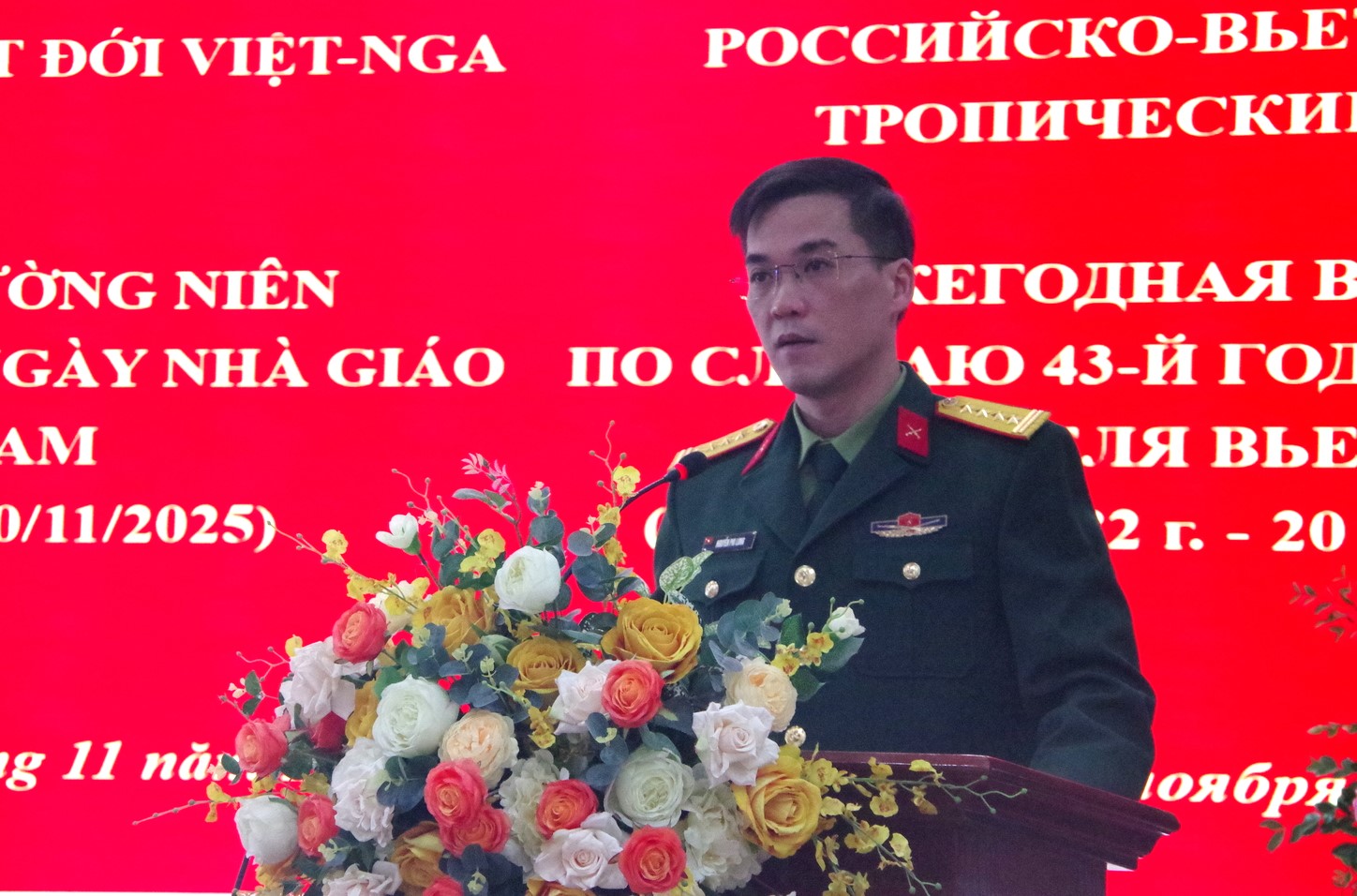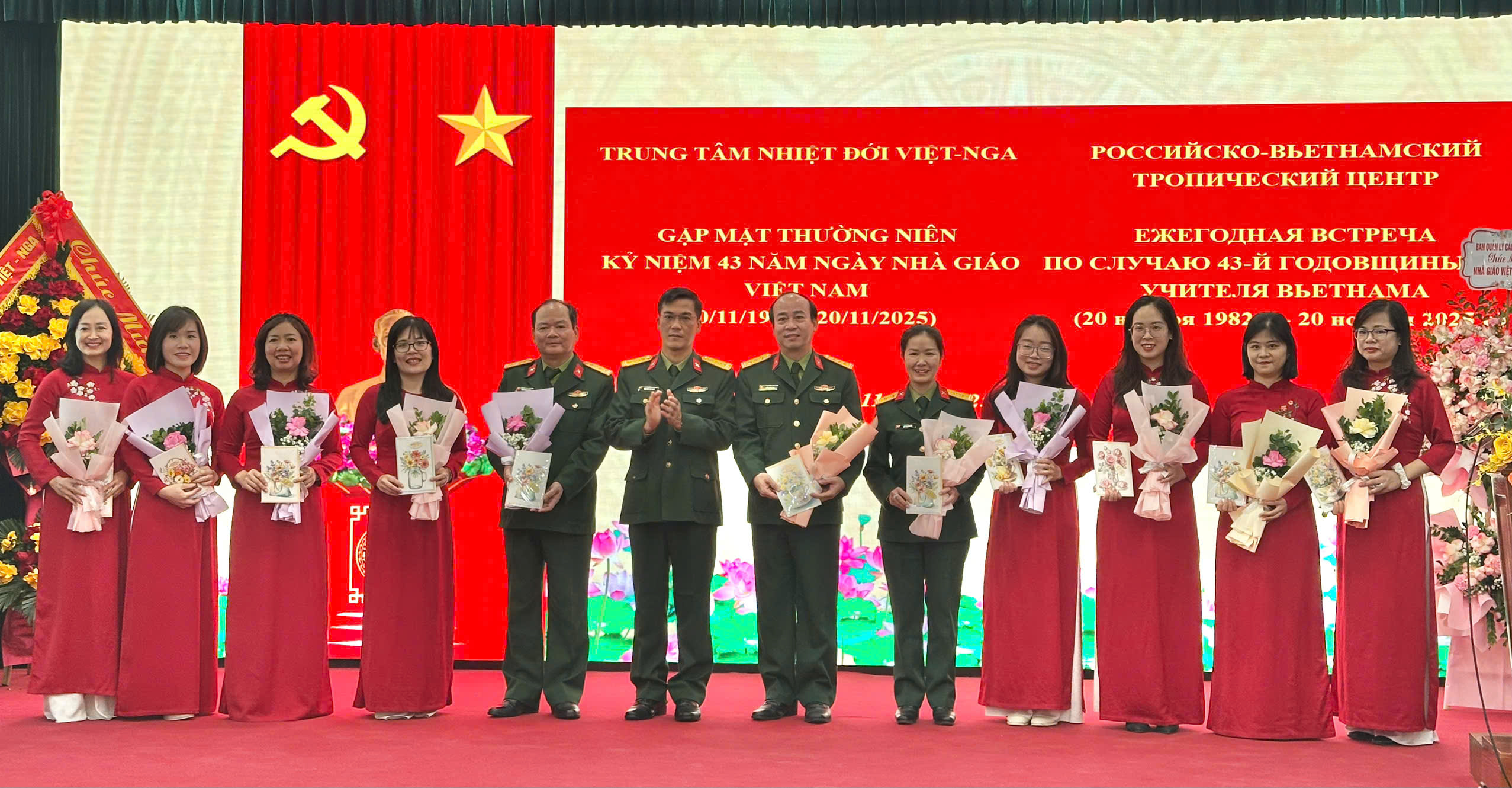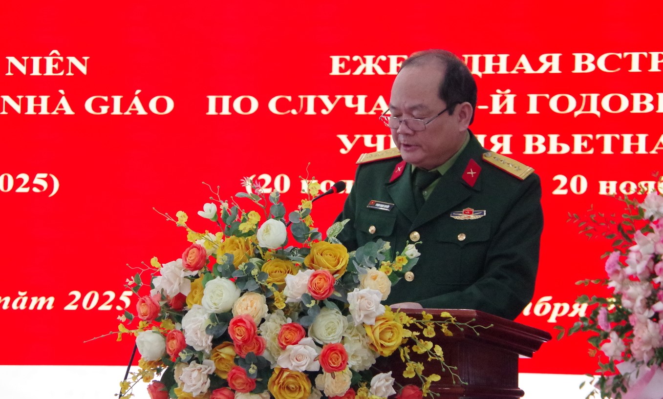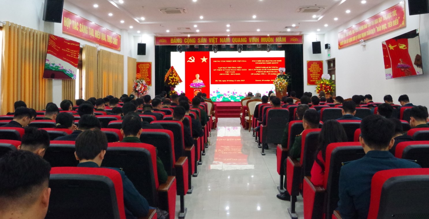 20/11/2025Sáng 20/11, Trung tâm Nhiệt đới Việt - Nga (Trung tâm) tổ chức gặp mặt nhân dịp kỷ niệm 43 năm Ngày Nhà giáo Việt Nam (20/11/1982 - 20/11/2025). Đại tá, TS. Nguyễn Phi Long, Phó Tổng Giám đốc Trung tâm dự và chủ trì buổi gặp mặt.