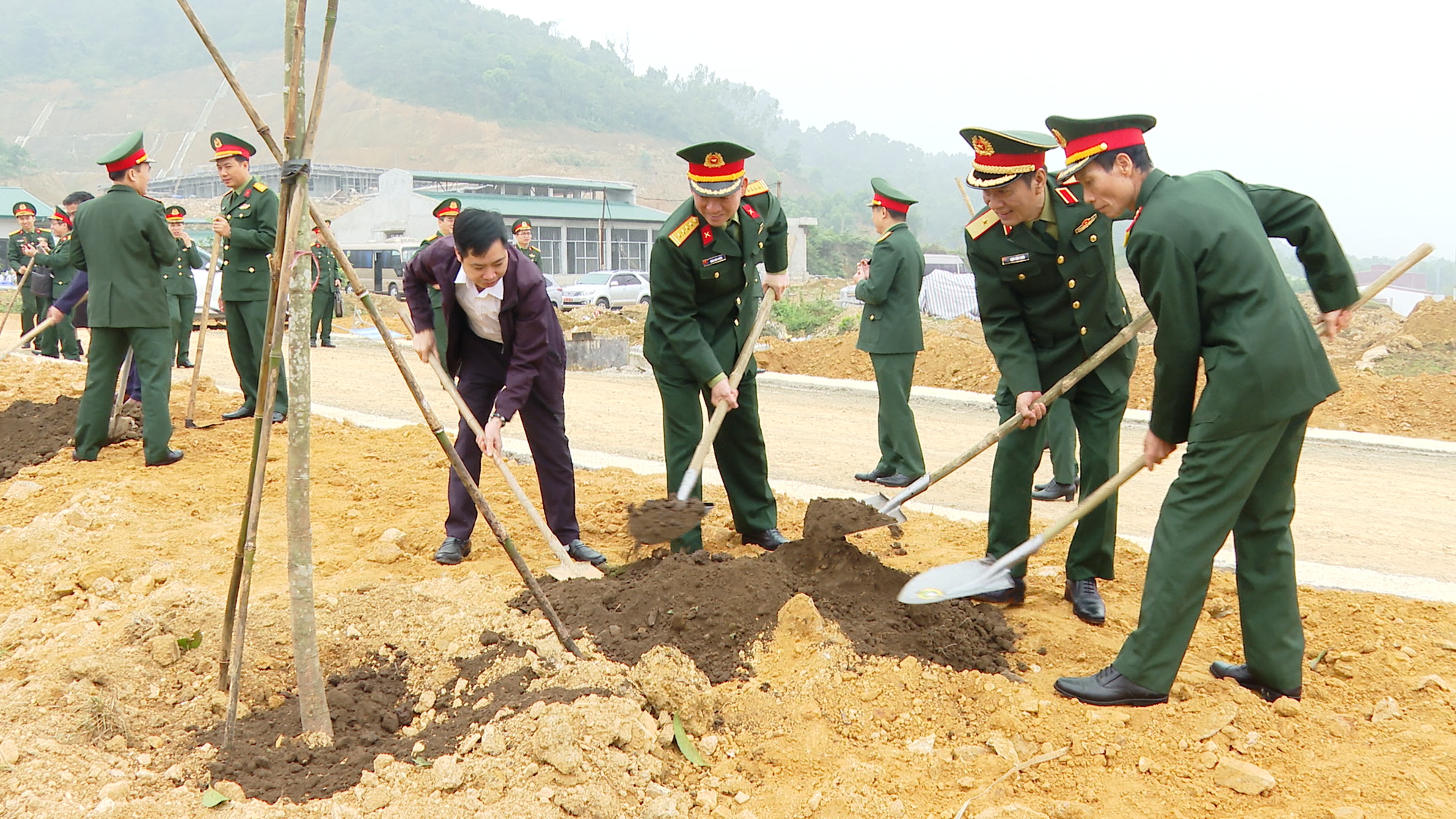 Thủ trưởng Trung tâm và các đại biểu tham gia trồng cây.