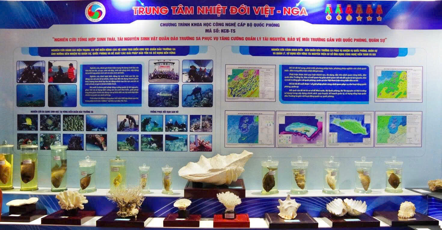 Cũng trong khuôn khổ chương trình Hội thảo, Trung tâm Nhiệt đới Việt - Nga đã giới thiệu và trưng bày các kết quả nghiên cứu, sản phẩm khoa học - công nghệ liên quan đến chủ đề của Hội thảo. Nổi bật là các sản phẩm nghiên cứu tổng hợp về sinh thái, tài nguyên sinh vật Quần đảo Trường Sa và các sản phẩm tiềm năng phục vụ tăng cường quản lý tài nguyên, bảo vệ môi trường gắn với quốc phòng, quân sự. Các sản phẩm thể hiện năng lực nghiên cứu, triển khai ứng dụng khoa học - công nghệ của Trung tâm, đóng góp những tài liệu khoa học có giá trị phục vụ nghiên cứu, đào tạo, giáo dục tuyên truyền, cũng như bảo vệ môi trường và tài nguyên sinh học vùng biển xa bờ, góp phần khẳng định chủ quyền biển đảo của Việt Nam khu vực Quần đảo Trường Sa.