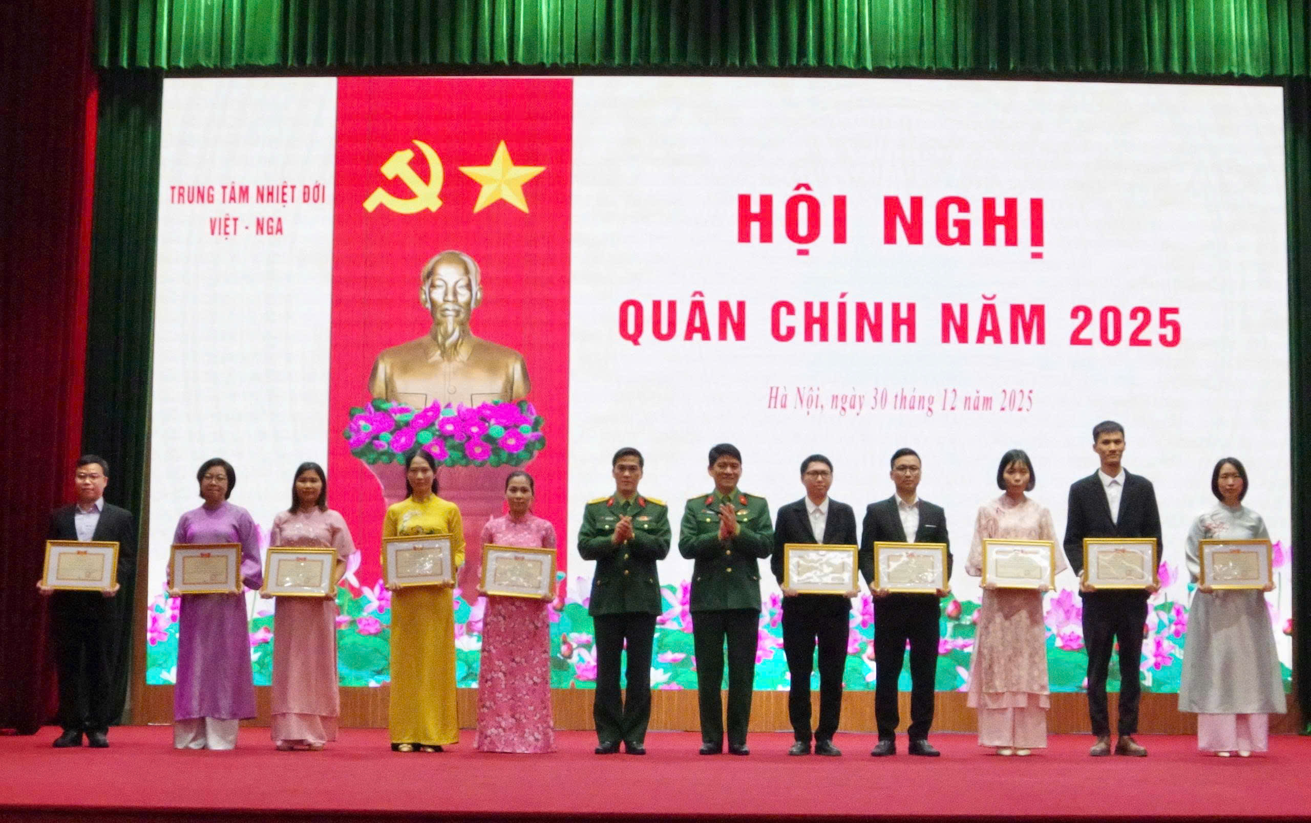 Cũng trong khuôn khổ Hội nghị, thừa ủy quyền của Bộ trưởng Bộ Quốc phòng, Thủ trưởng Trung tâm đã trao Cờ Thi đua, Bằng khen của Bộ trưởng Bộ Quốc phòng cho các tập thể, cá nhân có thành tích xuất sắc; đồng thời trao các phần thưởng cấp Trung tâm cho các tập thể, cá nhân hoàn thành xuất sắc nhiệm vụ năm 2025./.