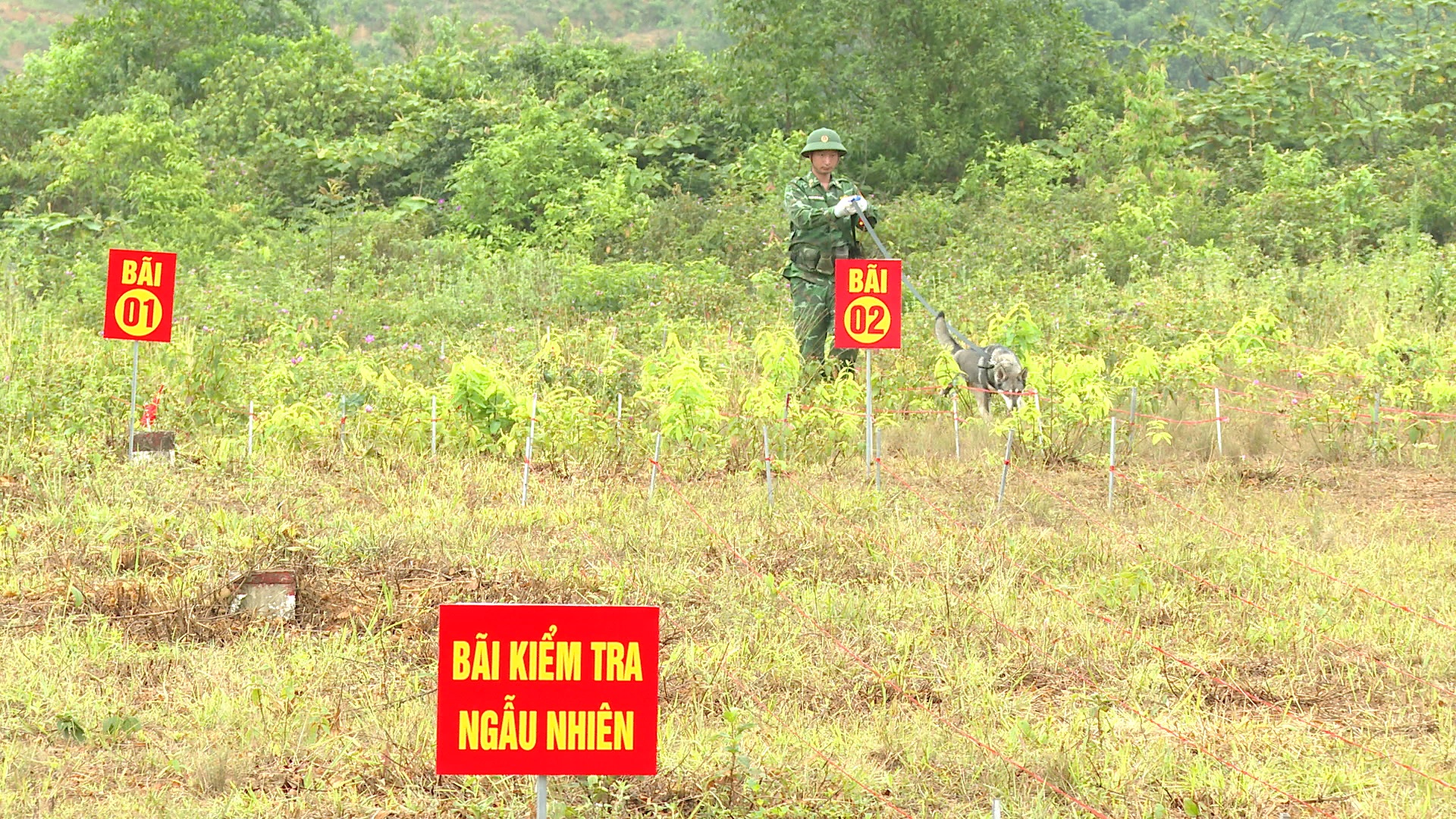 Tại buổi kiểm tra, đánh giá thực nghiệm, Hội đồng đã tổ chức cho 03 cá thể chó Sông Mã: Mích, Sa, Saka thực hiện nội dung tìm kiếm, phát hiện bom mìn, vật nổ trên 03 bãi kiểm tra chính thức và 01 bãi kiểm tra ngẫu nhiên. Các loại vật liệu nổ của 03 bãi kiểm tra được bố trí từ tháng 5/2025, riêng 4 tín hiệu vật nổ tại bãi kiểm tra ngẫu nhiên do đại diện Bộ Chỉ huy Quân sự tỉnh Quảng Trị bố trí 01 ngày trước ngày kiểm tra.